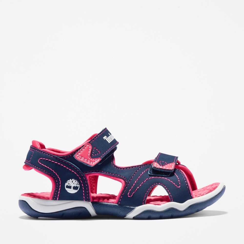 This lightweight 2-strap kids' sandal is made with water-friendly synthetic leather and features a hook-and-loop closure for convenience and ease,and an eco-conscious fabric lining.