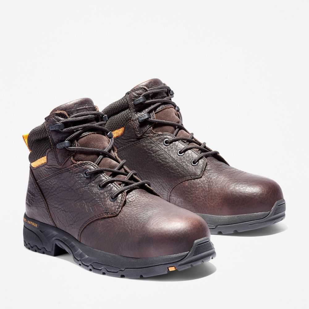 These rugged,steel-toe boots are built for comfort on the job,including cement construction for flexibility,a padded collar for a comfortable fit,and anti-fatigue technology.