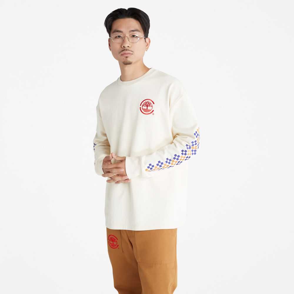 Hong Kong fashion label CLOT and Timberland have collaborated to bridge East to West.CLOT cofounder Edison Chen adds Asian-inspired designs and details to new and classic Timberland® styles,reflecting the best of both brands.This all-cotton,long-sleeve tee has a relaxed fit for the ultimate in comfort.