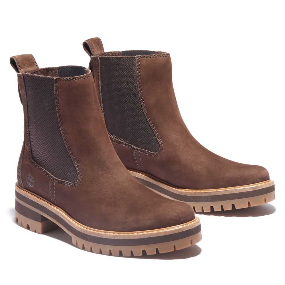 Our women's Courmayeur Chelsea boots may have rugged lug outsoles,but they feature a thoroughly feminine silhouette.A pull-tab and dual stretch gore make them easy to pull on,and we've added extra comfort features such as a flexible insole and cushiony footbed,as well as responsibly sourced materials.
