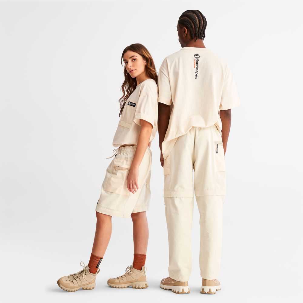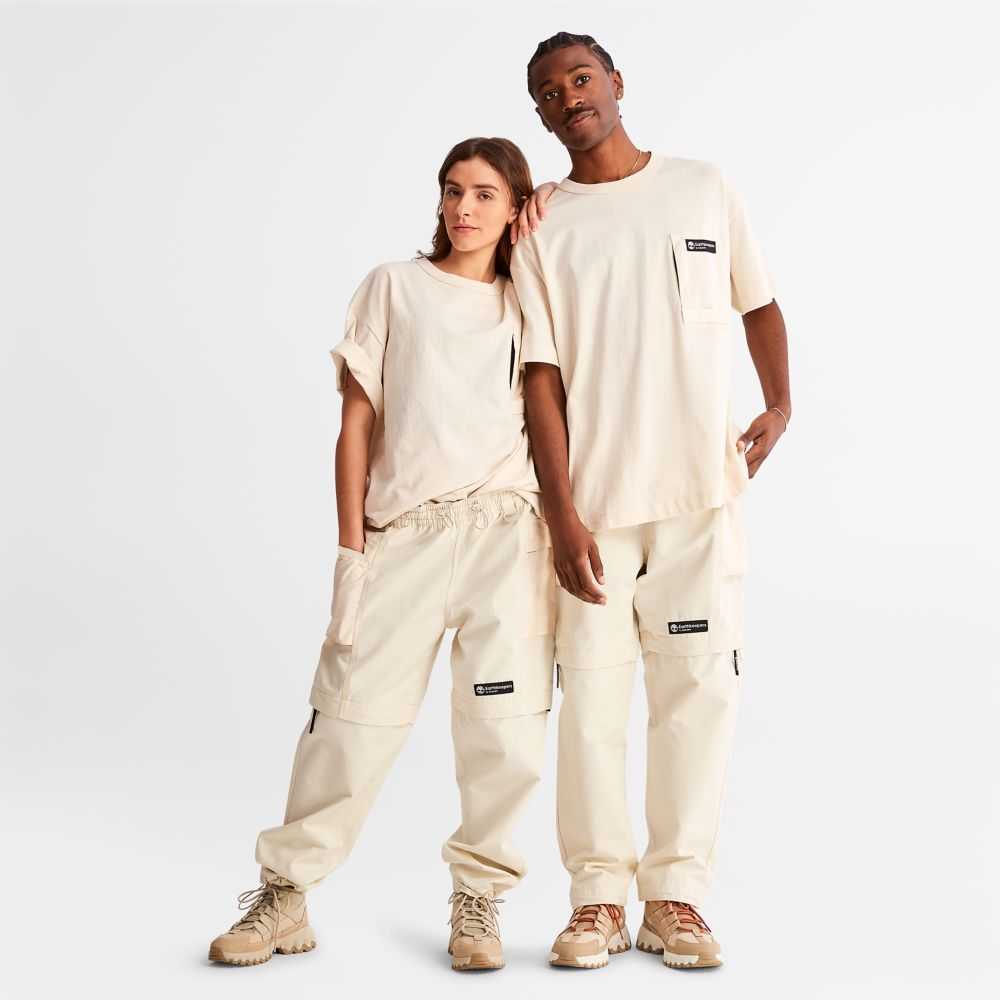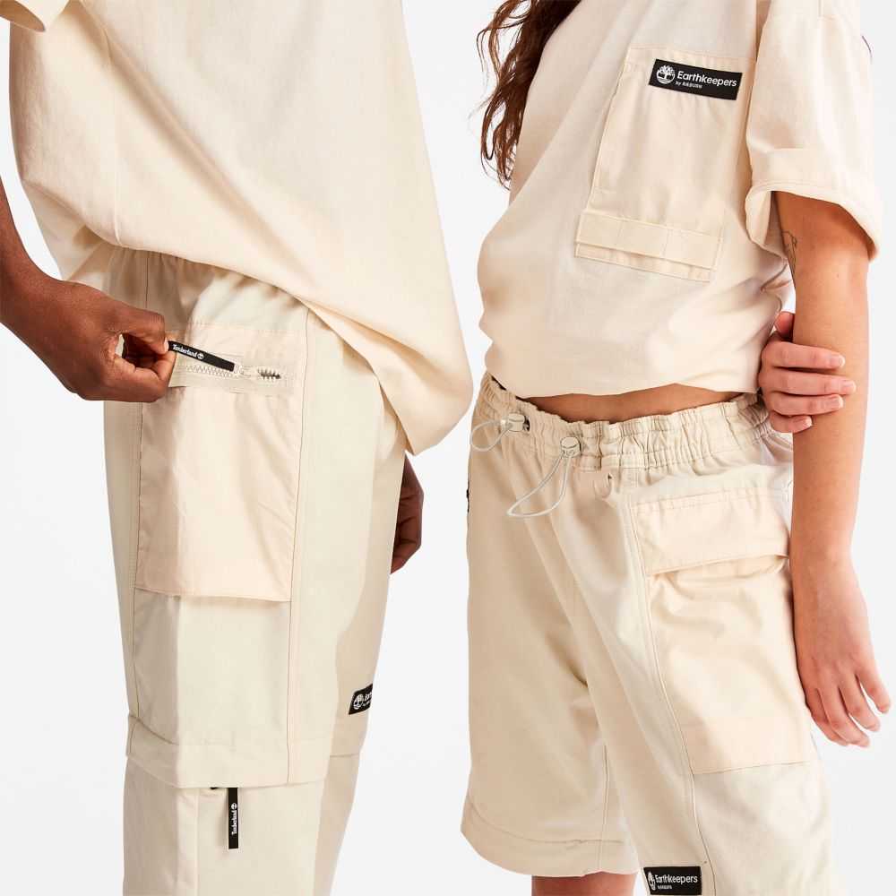 Our highest level of eco-innovation created by Timberland Creative Director Christopher Raeburn.These comfortable,relaxed-fit pants feature a cord adjuster and shock cord at the waist and hems for a secure fit,and zip-off legs that convert easily to shorts when the weather gets hot.They're also responsibly made with dye-free fabric containing 30% recycled cotton and 70% cotton grown without harmful chemicals or pesticides.