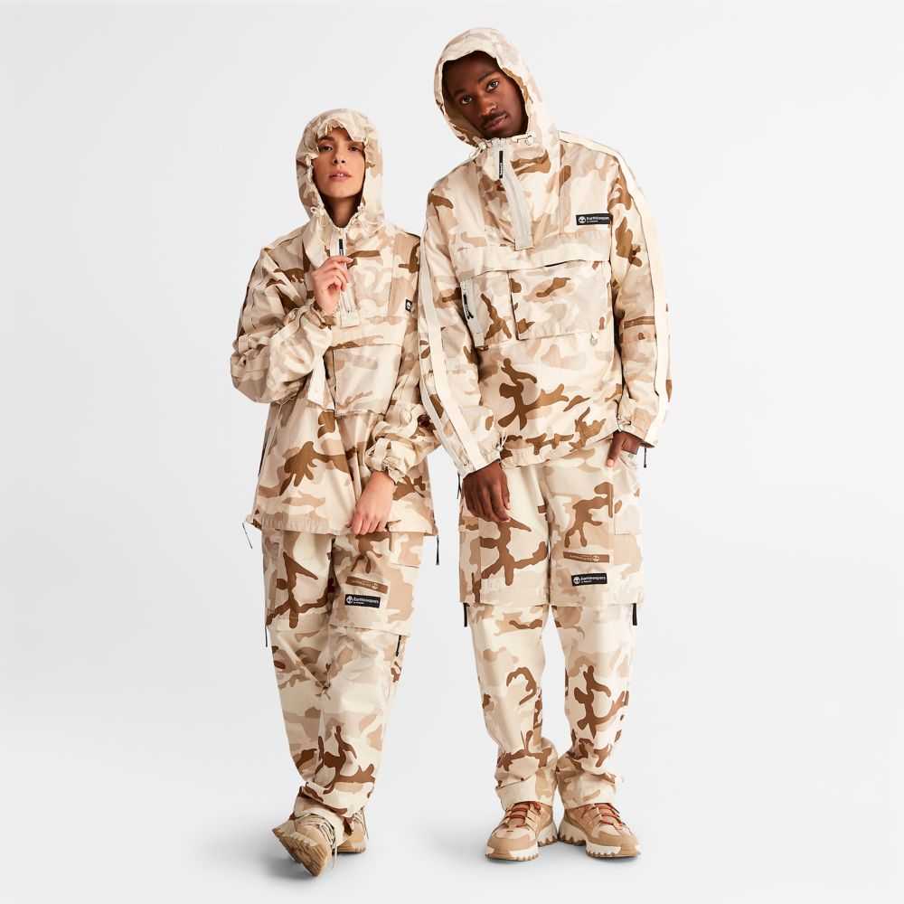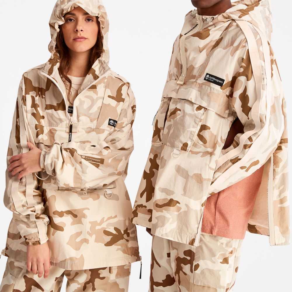 Our highest level of eco-innovation created by Timberland Creative Director Christopher Raeburn.Water-repellent,durable,and conveniently packable,this anorak features an allover camo print and is responsibly made with cotton grown without harmful chemicals or pesticides.