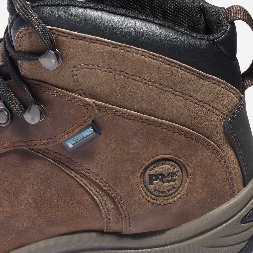 Tackle your to-do list with the support and protection of the Timberland PRO® Men’s Flume Work waterproof steel-toe work boots.Built with seam-sealed,waterproof leather uppers and a moisture-wicking,odor-fighting lining,these mid-cut work boots help keep feet dry and comfortable in wet conditions.They also feature a durable,non-slip rubber outsole that grips onto slick surfaces for reliable traction indoors and out.