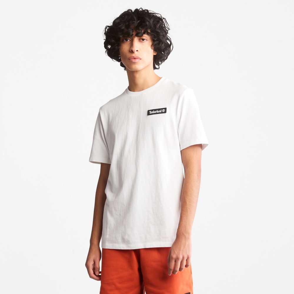 • Woven Timberland logo label at the chest