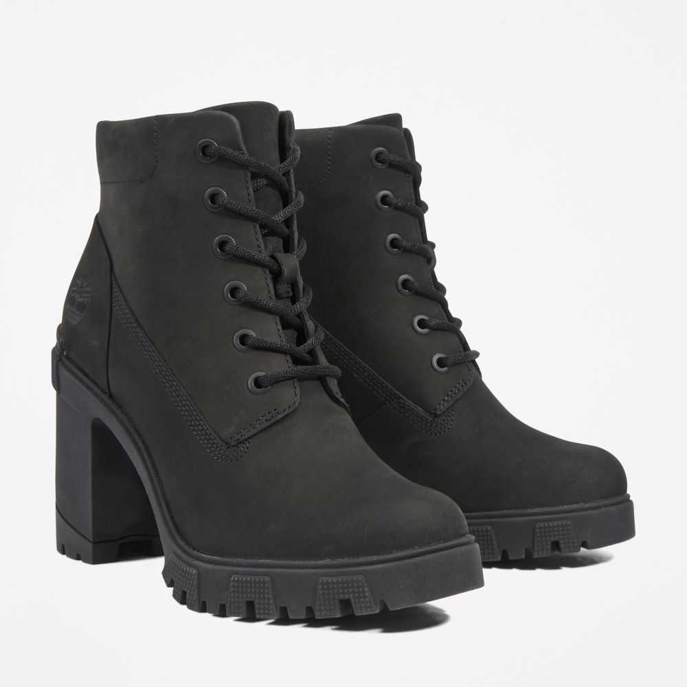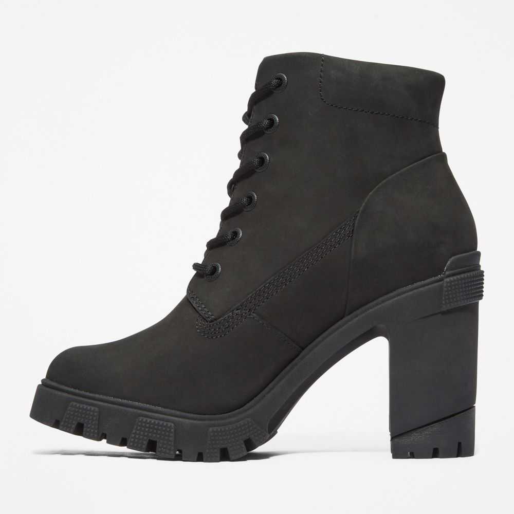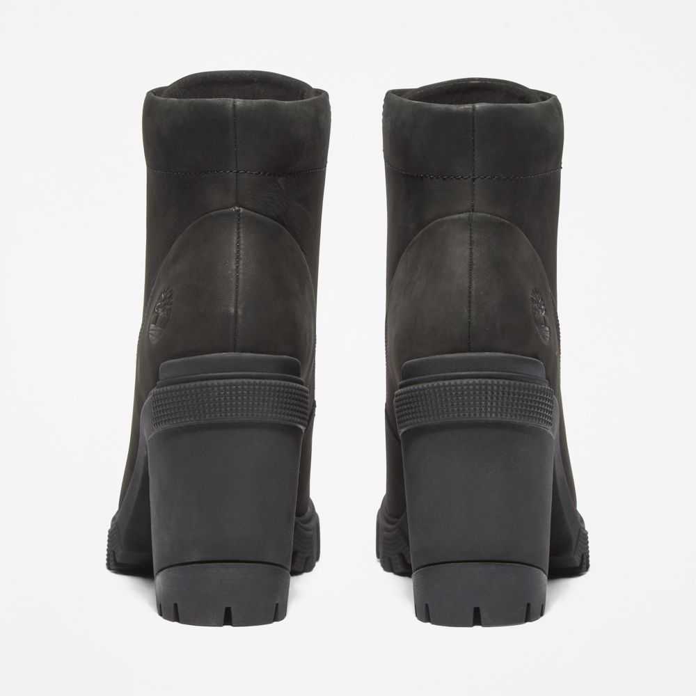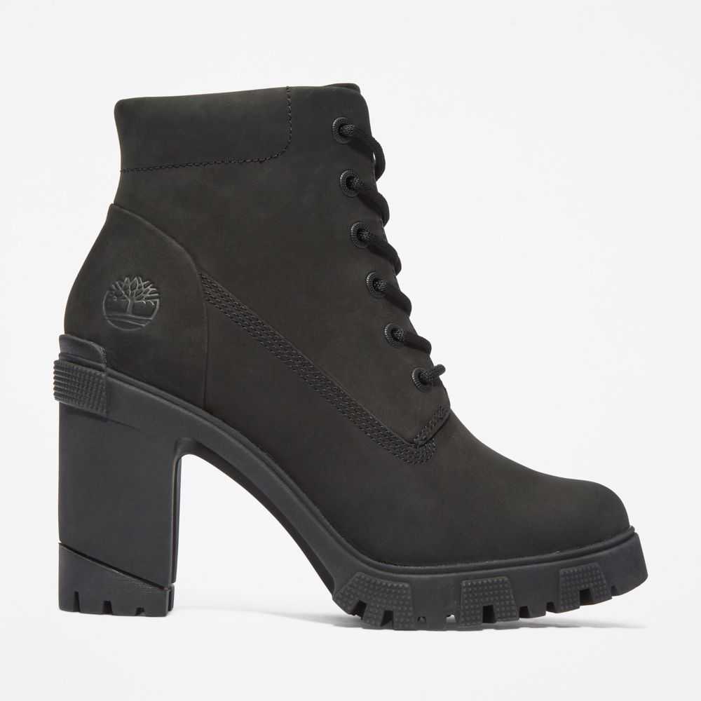 These trendy heeled boots feature smooth nubuck leathers treated to repel water and stains,arch support,a cushy foam footbed,a durable rubber lug sole,and eco-conscious materials,including a lining containing at least 50% recycled plastic diverted from landfills.