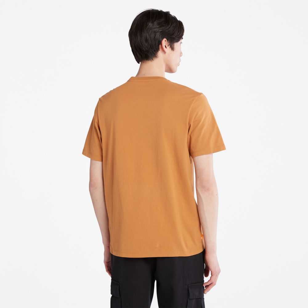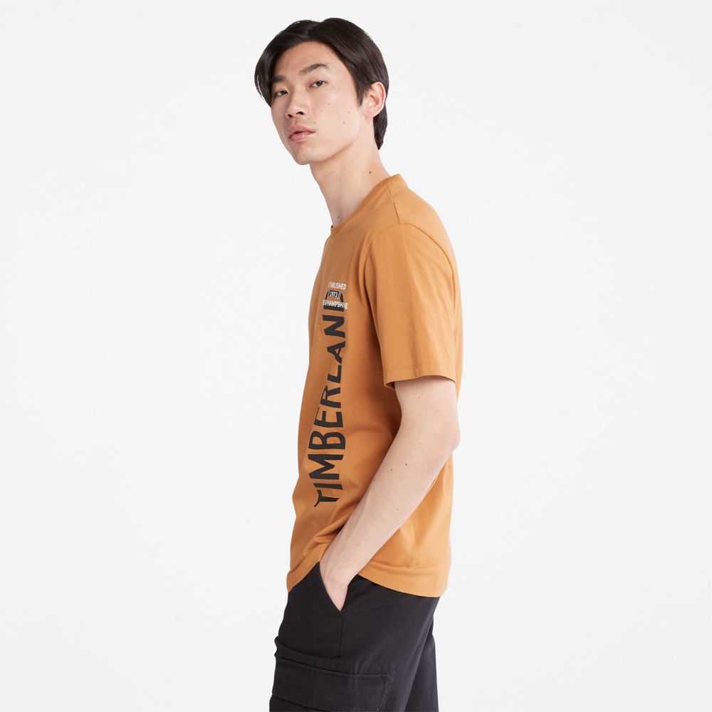 Our logo runs along the side of this short-sleeve tee,crafted from organically grown cotton because it's better for you,farmers,and the planet.
