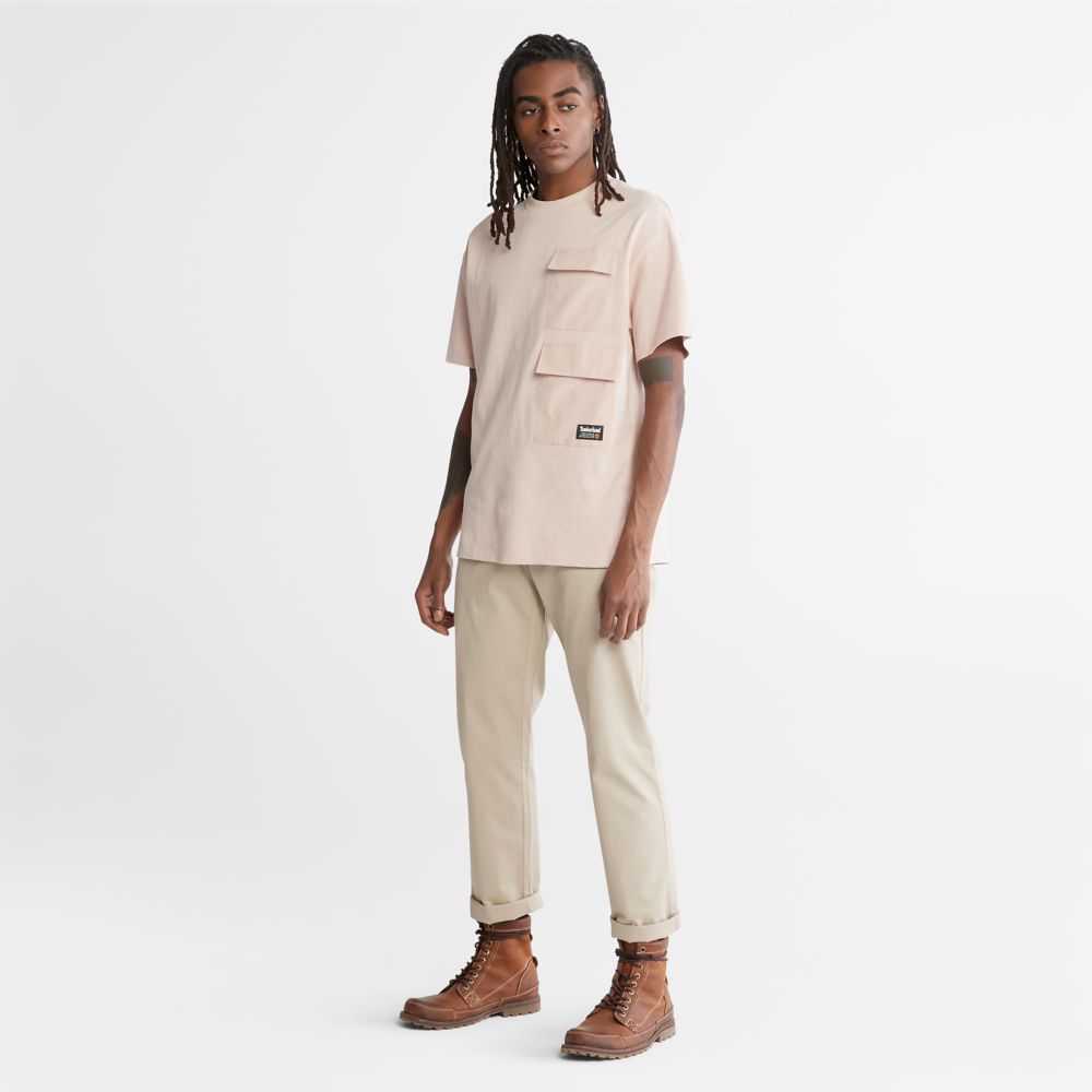 Worksite-inspired design at the edge of utility.Great for those cooler summer days,this comfortable,relaxed-fit T-shirt has handy cargo pockets and is made with heavyweight cotton fabric that's been organically grown.