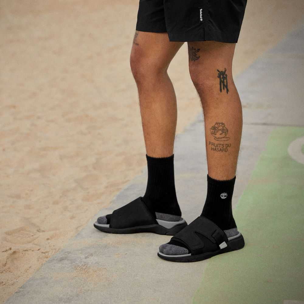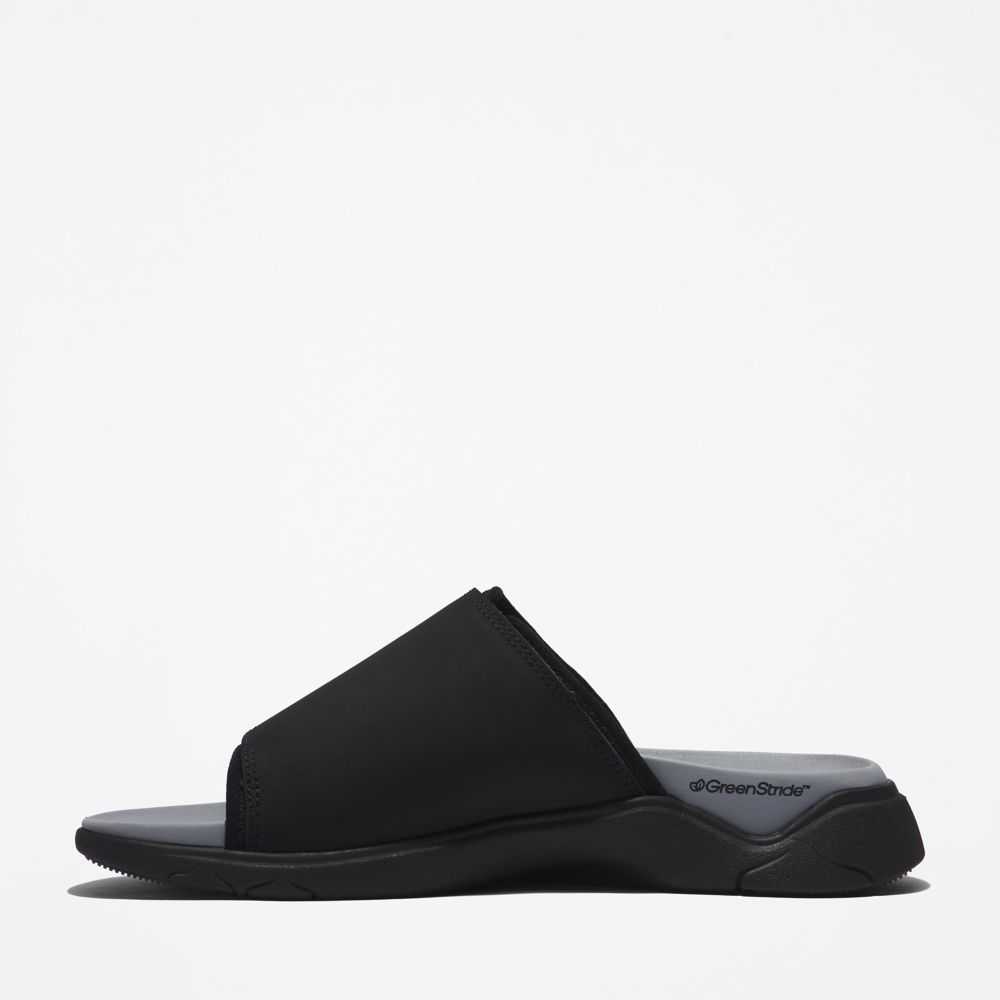 This convenient slide sandal was designed for comfort with an EVA-blend foam midsole and footbed.It was also designed with respect for nature with a GreenStride™ sole made of 75% renewable bio-based material and eco-conscious leather and linings.