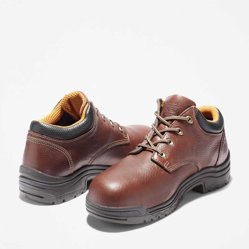 Durable,comfortable,and with casual looks,these work shoes feature an alloy safety toe,anti-slip rubber outsole,and an antimicrobial lining for odor control.