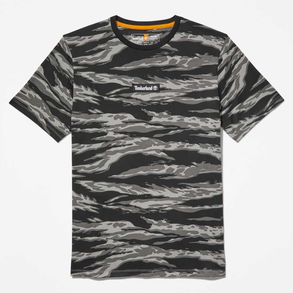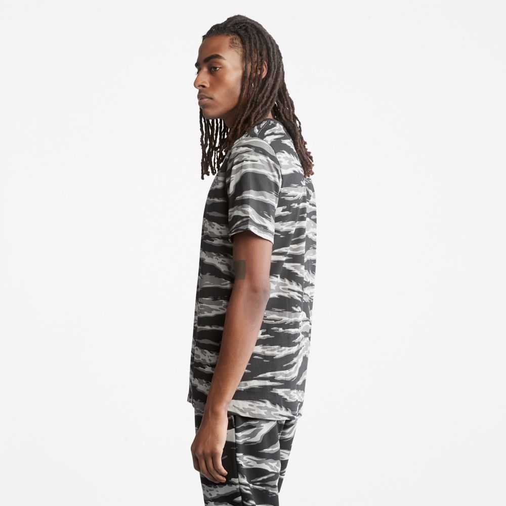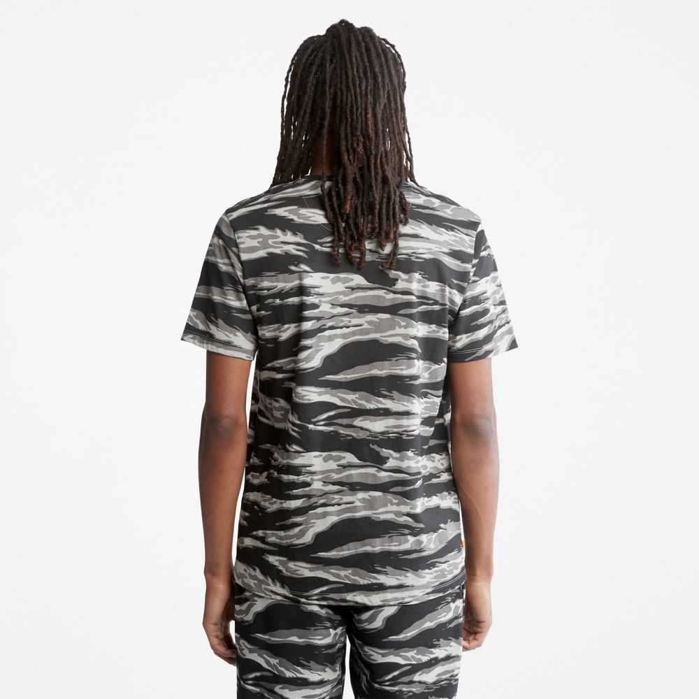 This men's tee features an allover tiger camo print,in cotton grown without harmful chemicals or pesticides.